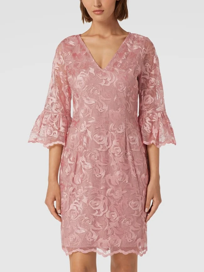 Das Cocktailkleid von Adrianna Papell ist aus einem strapazierfähigen Material gefertigt und tailliert geschnitten. Es zeigt sich mit Stickereien und V-Ausschnitt.