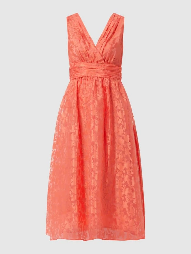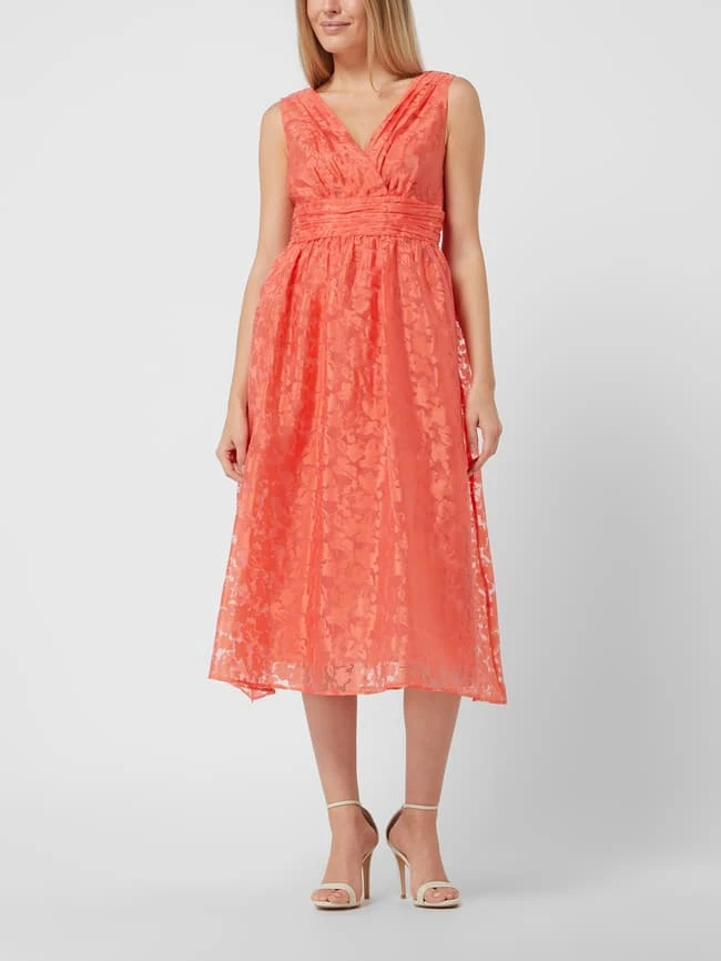 Das Cocktailkleid von Esprit Collection ist aus einer Viskosemischung gefertigt und tailliert geschnitten. Es kommt in Wickel-Optik mit floralem Muster, Taillenpasse und ausgestelltem Rockteil.