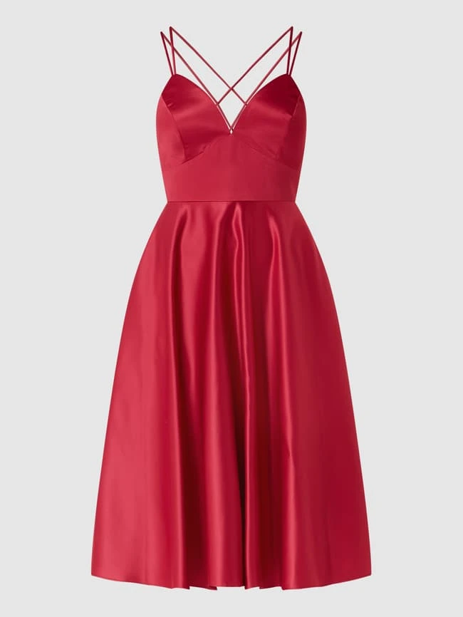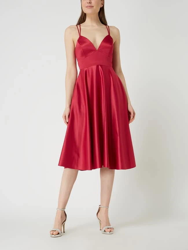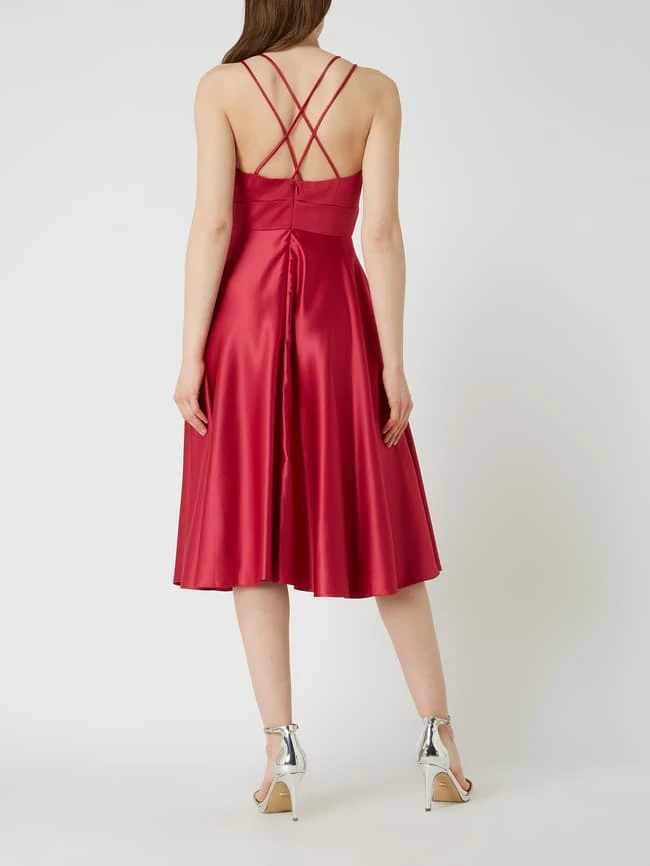 Das Cocktailkleid von Jake*s Cocktail ist aus Satin gefertigt und tailliert geschnitten. Es zeigt sich mit Spaghettiträgern, ausgestelltem Rockteil und Nahtreißverschluss.