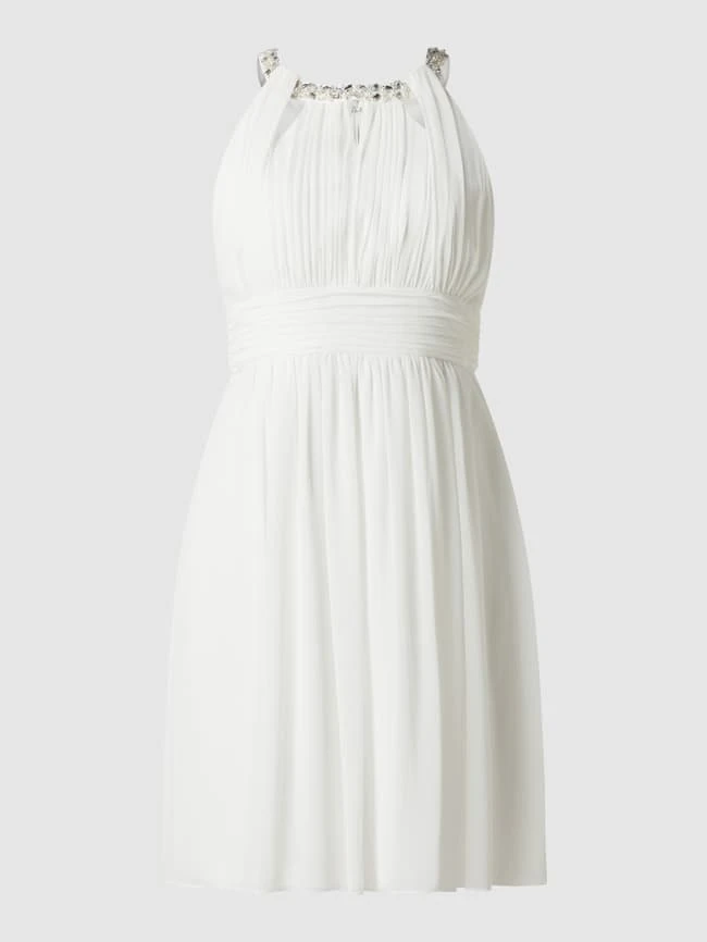 Das Cocktailkleid von Christian Berg Cocktail ist aus Chiffon gefertigt und tailliert geschnitten. Es zeigt sich mit gelegten Falten, amerikanischem Ausschnitt und Taillenpasse.