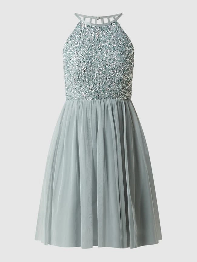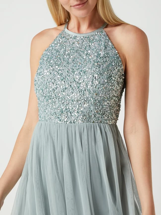 Das Cocktailkleid von Jake*s Cocktail ist aus einem strapazierfähigen Material gefertigt und tailliert geschnitten. Es zeigt sich mit Paillettenbesatz und amerikanischem Ausschnitt.