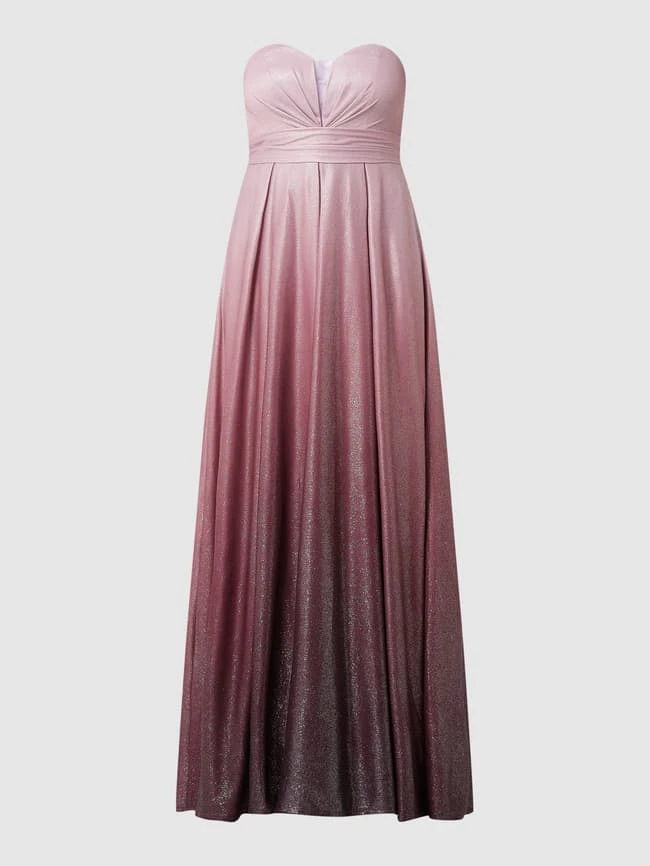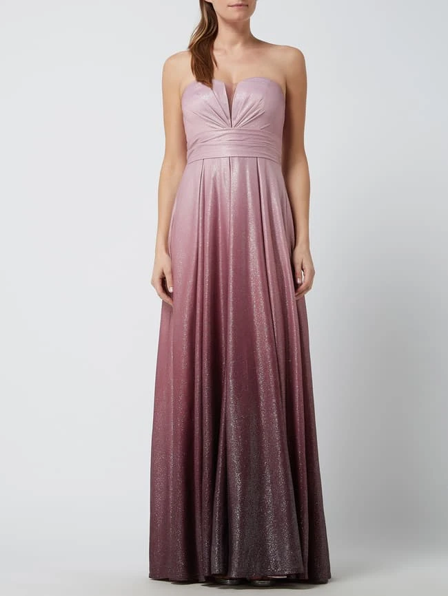 Das Corsagenkleid von Jake*s Cocktail ist aus glitzerndem Mesh gefertigt und tailliert geschnitten. Es zeigt sich im Ombré-Look mit abnehmbaren Trägern und drapierten Falten.