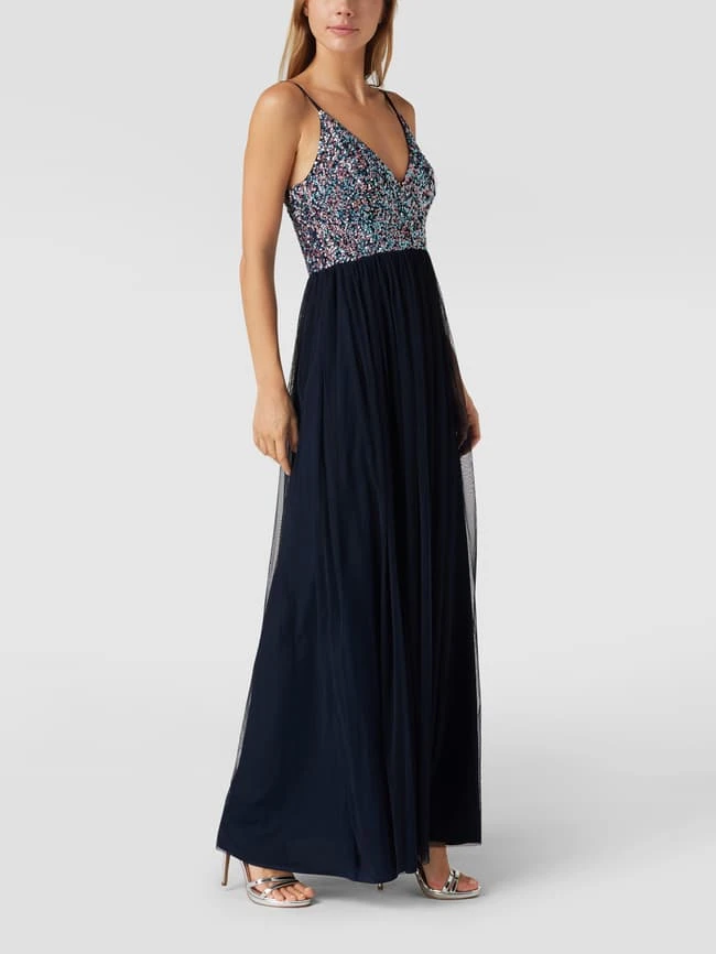 Das Abendkleid von Lace & Beads ist aus strapazierfähigem Material gefertigt und tailliert geschnitten. Es kommt mit schmalen Trägern, V-Ausschnitt, Besatz aus Pailletten sowie doppellagigem Rockteil.