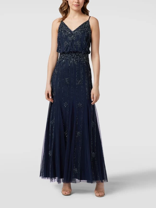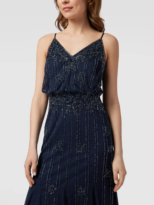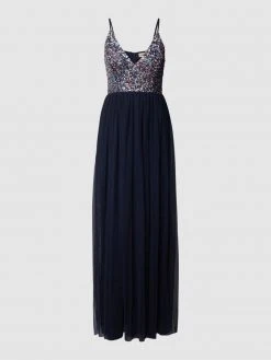 Das Abendkleid von Lace & Beads ist aus strapazierfähigem Material gefertigt und tailliert geschnitten. Es kommt im ärmellosen Design mit schmalen Trägern, V-Ausschnitt sowie Besatz aus Pailletten und Ziersteinen.