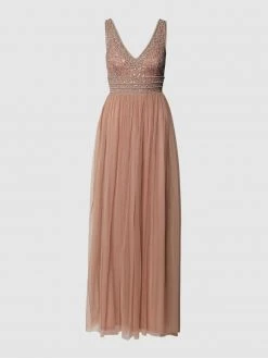 Das Abendkleid von Lace & Beads ist aus strapazierfähigem Material gefertigt und tailliert geschnitten. Es kommt in Wickel-Optik mit V-Ausschnitt, Zierbesatz und Seitenschlitzen.