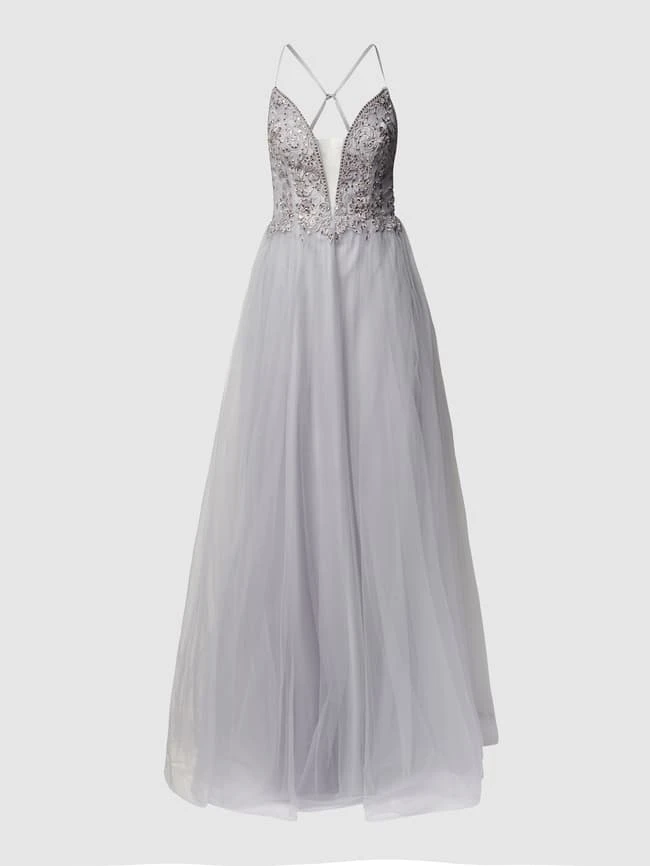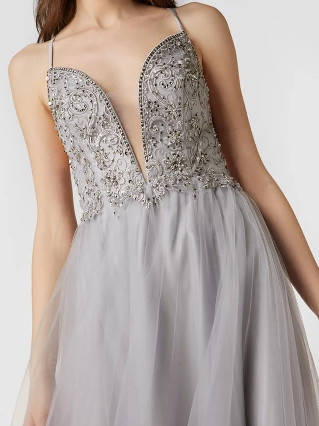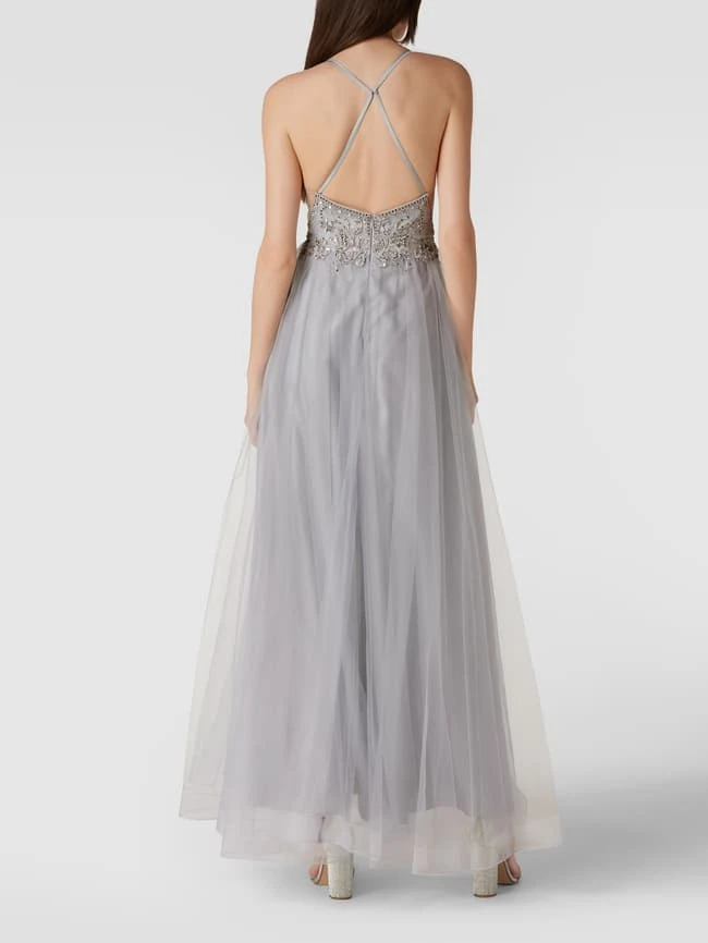 Das Abendkleid von LAONA ist aus strapazierfähigem Material gefertigt und tailliert geschnitten. Es kommt mit Zierbesatz, Spaghettiträgern und semitransparenten Einsätzen.
