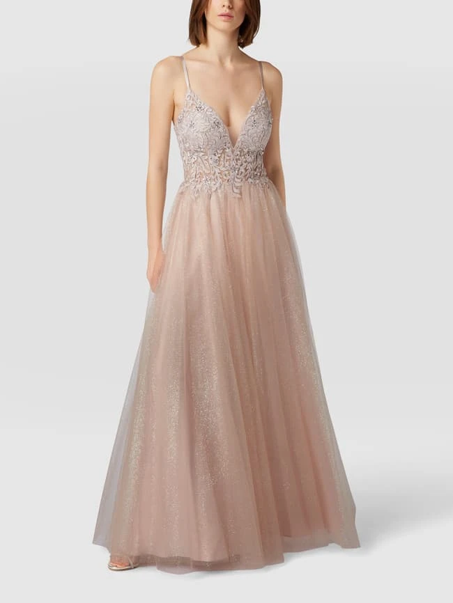Das Abendkleid von LUXUAR FASHION ist aus einem strapazierfähigen Material gefertigt und tailliert geschnitten. Es zeigt sich mit floralen Stickereien sowie Strassstein- und Zierperlenbesatz.