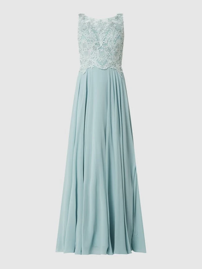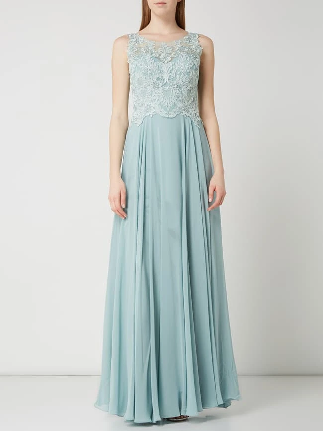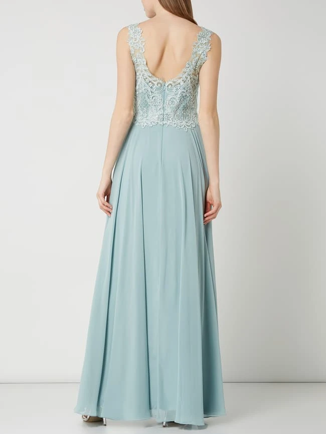 Das Abendkleid von LUXUAR LIMITED ist aus Tüll und Chiffon gefertigt. Es zeigt sich in taillierter Passform mit ornamentalen Stickereien und Ziersteinen.
