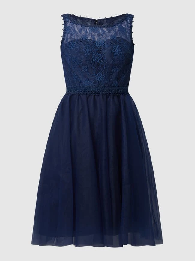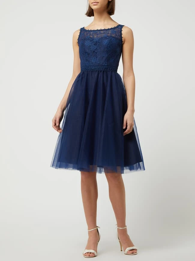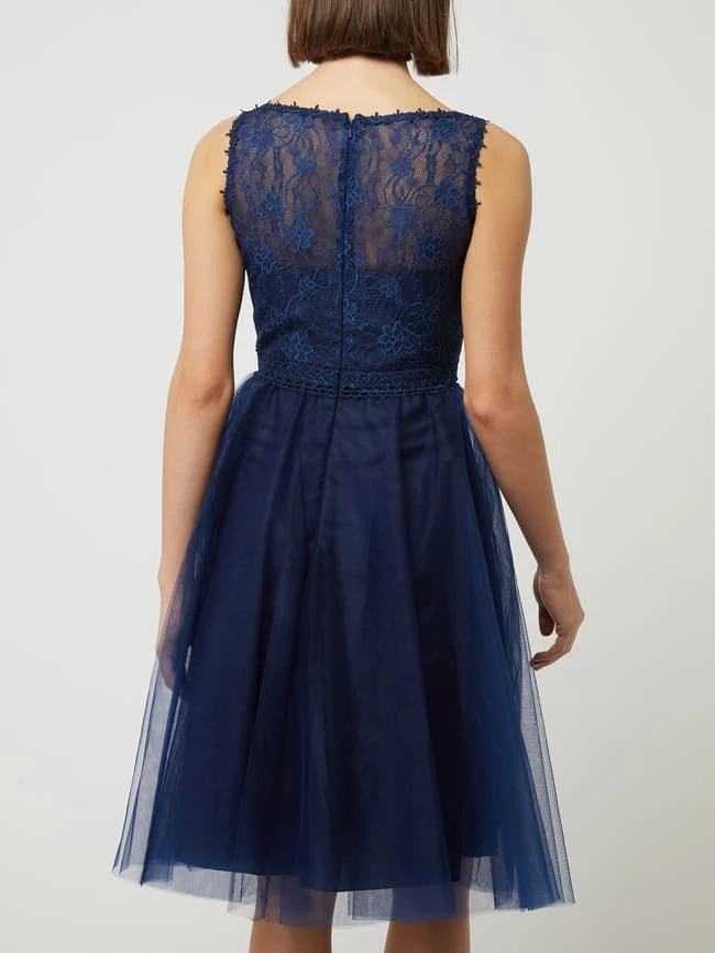 Das Cocktailkleid von LUXUAR ist aus Mesh und Spitze gefertigt. Es kommt in taillierter Passform mit Rundhalsausschnitt, ausgestelltem Rockteil und Nahtreißverschluss auf der Rückseite.