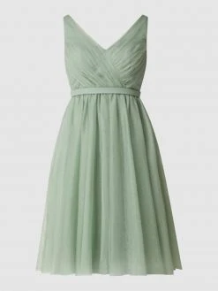 Das Abendkleid von TROYDEN COLLECTION ist aus strapazierfähigem Material gefertigt und tailliert geschnitten. Es kommt mit schimmerndem Kontrastbesatz, semitransparenten Einsätzen und Herz-Ausschnitt.