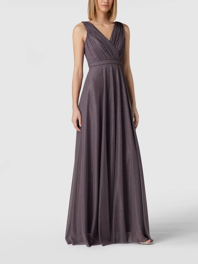 Das Abendkleid von TROYDEN COLLECTION ist aus strapazierfähigem Material gefertigt und tailliert geschnitten. Es kommt in schimmernder Optik mit V-Ausschnitt, Taillenpasse und breiten Trägern.