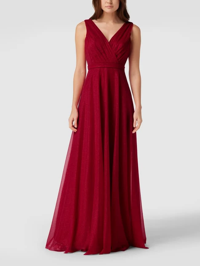 Das Abendkleid von TROYDEN COLLECTION ist aus strapazierfähigem Material gefertigt und tailliert geschnitten. Es kommt in schimmernder Optik mit V-Ausschnitt, Taillenpasse und breiten Trägern.
