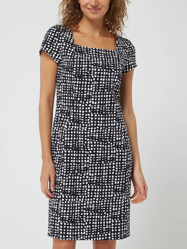 Das Cocktailkleid von Vera Mont ist aus einem schimmernden Baumwoll-Elasthan-Mix gefertigt. Es zeigt sich in eng anliegender Passform mit Karree-Ausschnitt und Nahtreißverschluss auf der Rückseite.